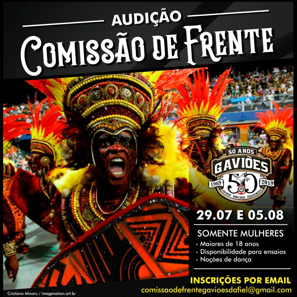 A Escola de Samba Gaviões da Fiel em comemoração aos 50 anos de história no Carnaval SP, fará no sábado (17) após às 20h, na Sede do Corithians, no Parque São Jorge, um evento com shows e presenças ilustres do Grupo Clareou, Raffa Augusto, Comunidade do Samba da Santa Cecília, DJ Fernando Gavião, Bateria Ritimão com a Ala Musical dos Gaviões da Fiel e o show especial de Zeca Pagodinho. Além disso, a Rainha de Bateria Sabrina Sato, ex-jogadores do Corinthians, artistas e demais personalidades corinthianas participarão do evento.